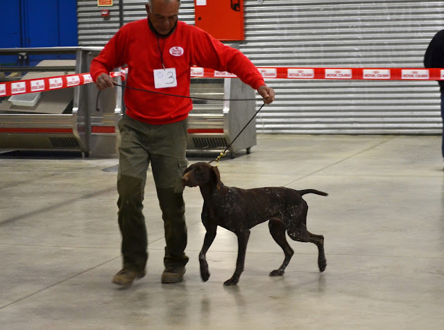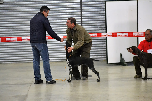 Terminada a Barrage para atribuição do melhor estilo Braco, fomos para um pavilhão onde se procedeu a entrega dos troféus referentes ao trabalho e se deu inicio ao Concurso Monográfico da Raça Braco Alemão. Estiveram presentes 23 exemplares. O ambiente e o inicio do concurso.